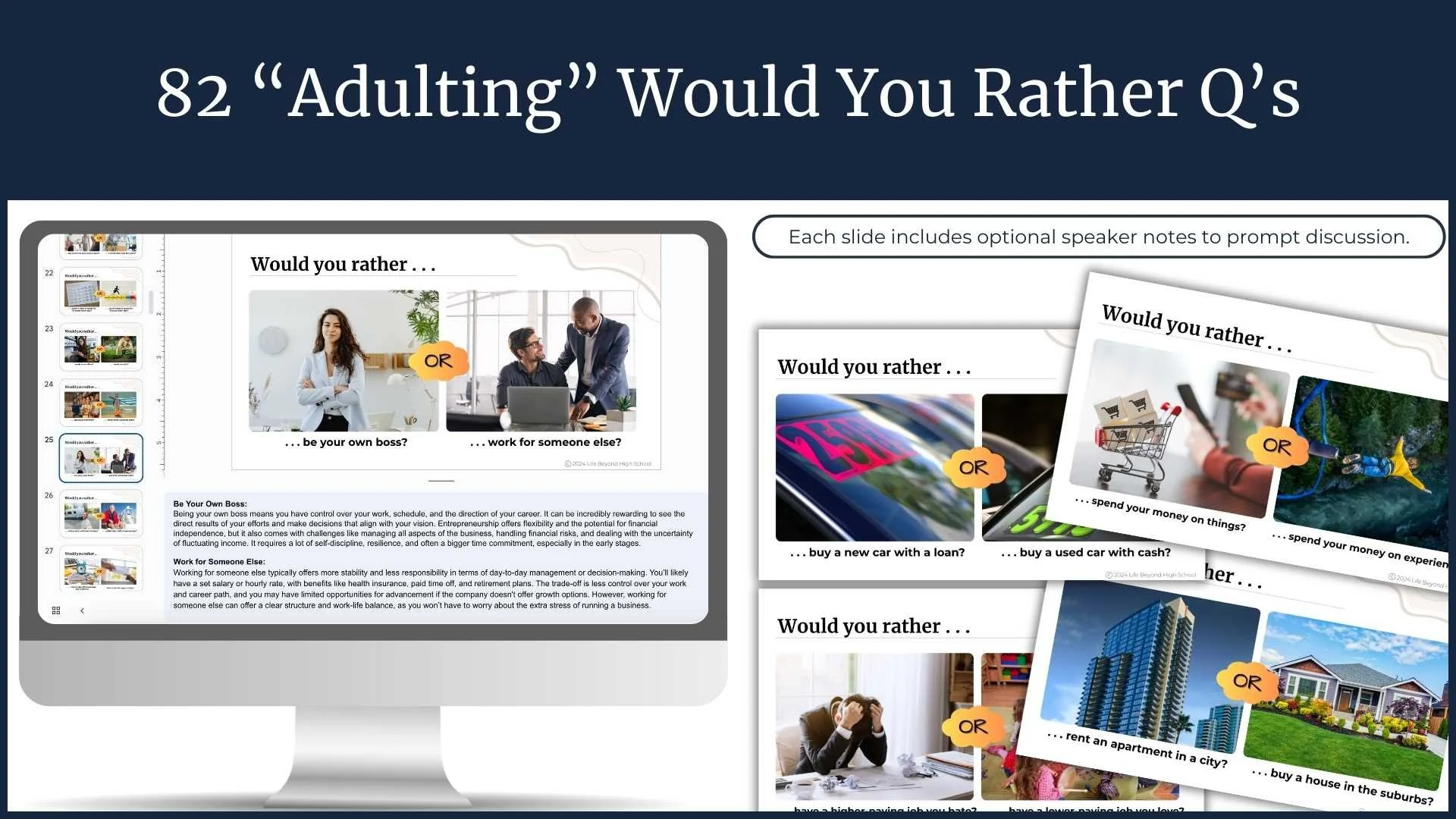 Would You Rather: Adulting Edition is a classroom-ready, conversation-starting activity that gets students thinking about the real-life decisions they'll face after high school.