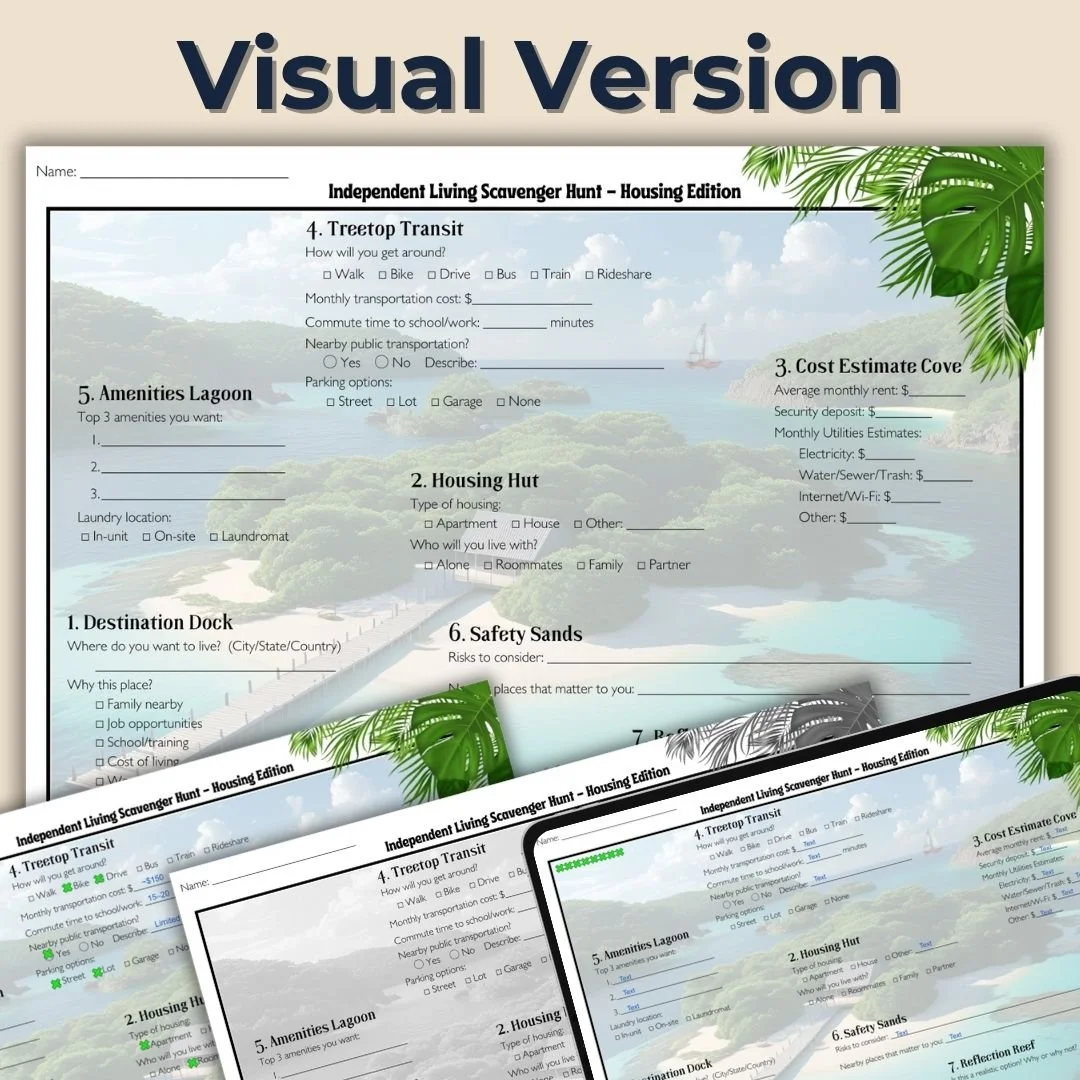 This island-themed scavenger hunt helps students explore where and how they might live after high school. As they “navigate the island,” they’ll explore real-world topics like location, housing types, monthly costs, transportation, amenities, and neighborhood safety. Along the way, they’ll build critical decision-making and research skills that support a successful transition to adulthood.